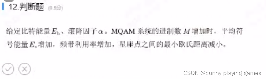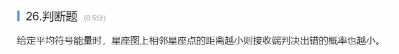 26. 给定平均符号能量时,星座图上相邻星座点的距离越小则接收端判决出错的概率也越小。