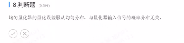 8. 均匀量化器的量化误差服从均匀分布,与量化器输入信号的概率分布无关。
