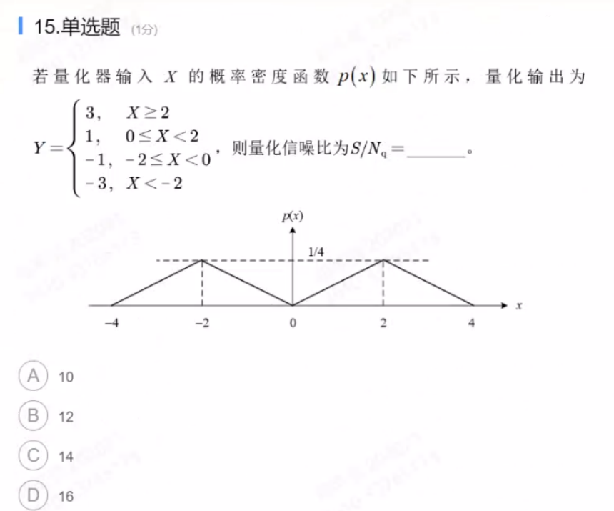 15. 若量化器输入X的概率密度函数 p()如下所示,量化输出为 则量化信噪比为