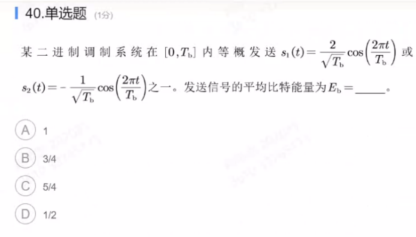 40. 某二进制调制系统在 [0,T] 内等概发送 或 之一。发送信号的平均比特能量为