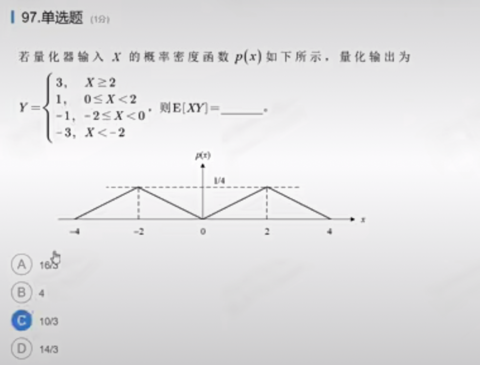 97. 若量化器输入 的概率密度函数 p(x)如下所示,量化输出为