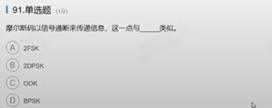 91. 摩尔斯码以信号通断来传递信息,这一点与类似。