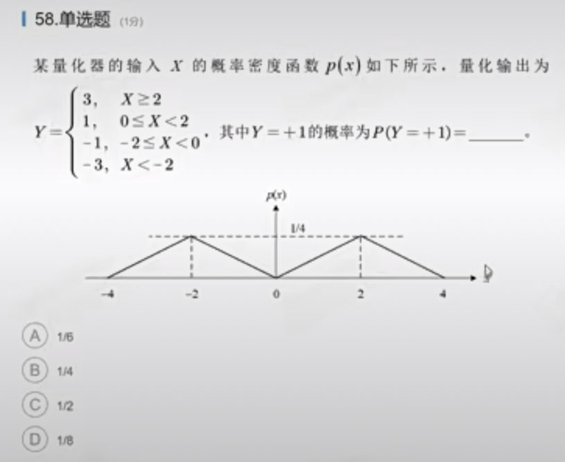 58. 某量化器的输入 X 的概率密度函数 p)如下所示,量化输出为,其中Y=+1的概率为P(Y=+1)=