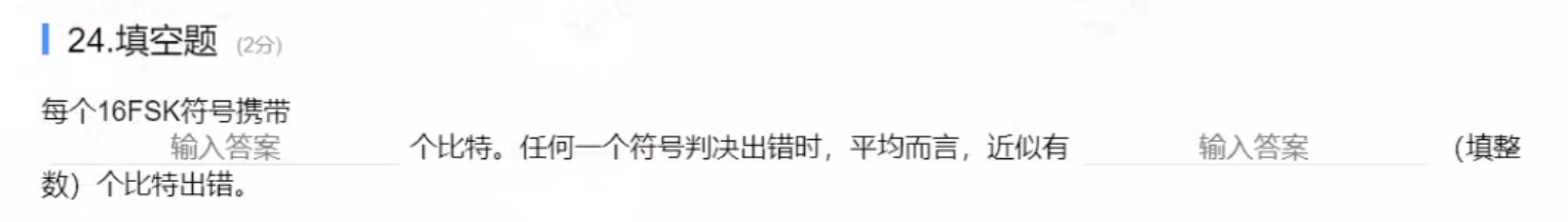 24. 每个16FSK符号携带 个比特。任何一个符号判决出错时,平均而言,近似有 数)个比特出错。