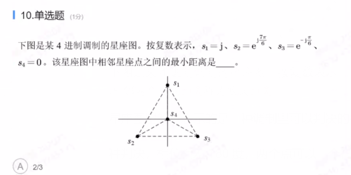 10. 下图是某4进制调制的星座图。按复数表示,。该星座图中相邻星座点之间的最小距离是