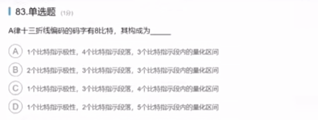 1个比特指示极性,3个比特指示段落,4个比特指示段内的量化区间