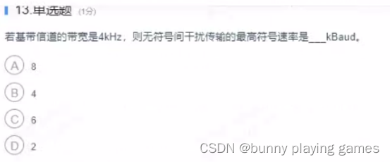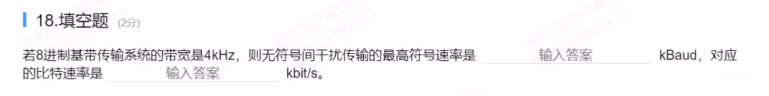 18. 若8进制基带传输系统的带宽是4kHz,则无符号间干扰传输的最高符号速率是……对应的比特速率是