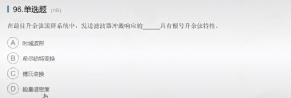 96. 在最佳升余弦滚降系统中,发送滤波器冲激响应的_具有根号升余弦特性