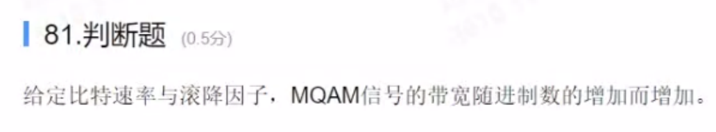 81. 给定比特速率与滚降因子,MQAM信号的带宽随进制数的增加而增加。