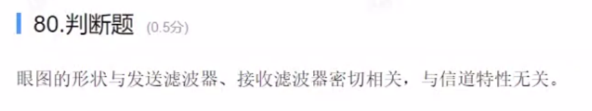 80. 眼图的形状与发送滤波器、接收滤波器密切相关,与信道特性无关。