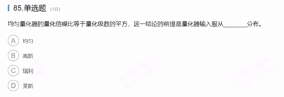 85. 均匀量化器的量化信噪比等于量化级数的平方,这一结论的前提是量化器输入服从 分布