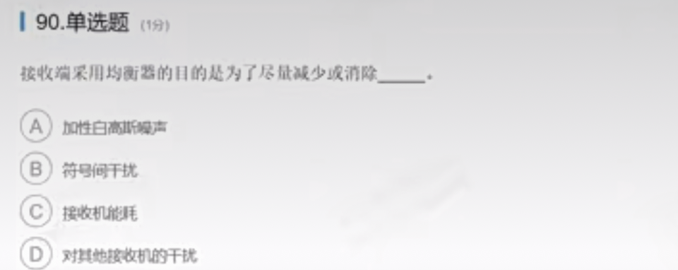 90. 接收端采用均衡器的目的是为了尽量减少或消除