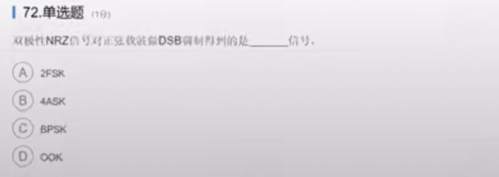72. 双极性NRZ信号对正弦载波DSB调制得到的是 信号