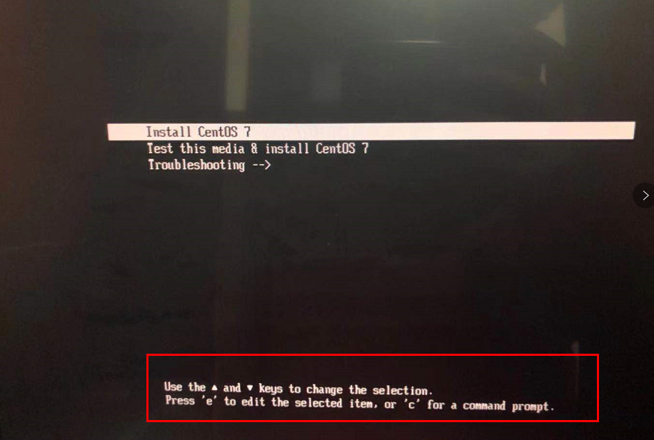 将光标定位在“Install Centos 7”后,根据下方提示,按e键