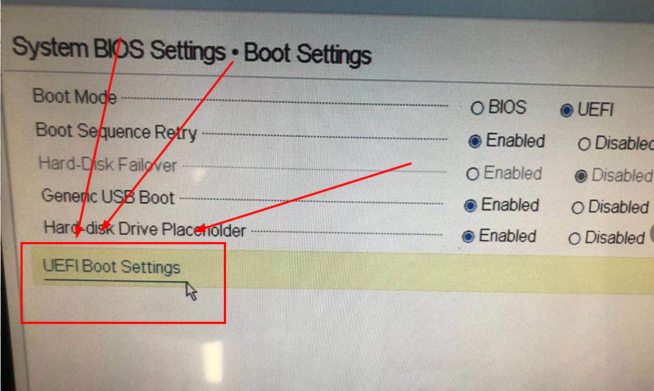选择好后,左下角位置会变成 UEFI Boot Settings