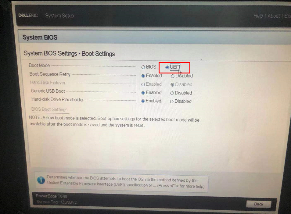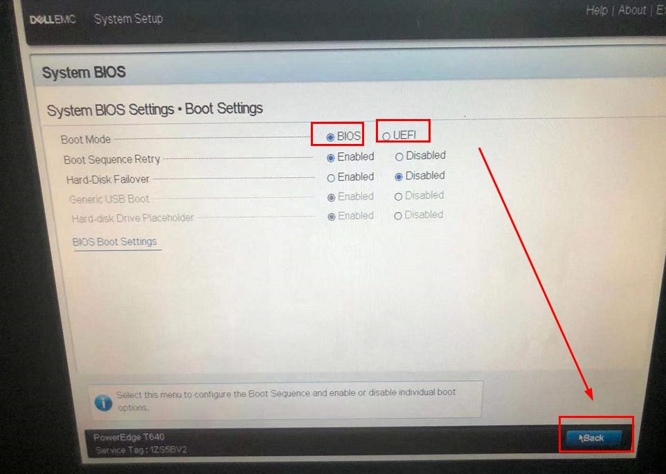 进入后,可在Boot Mode 中选择BIOS 或是UEFI模式启动 选择后,点击右下角back返回即可。