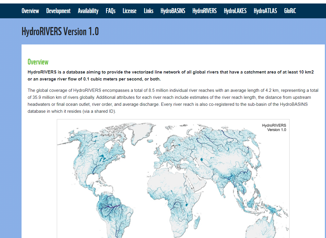 在做水域分析的时候需要参考当地的河流数据,因有部分是境外的,所以有了全球河流数据这个需求,这个数据的可以在Hydrosheds这个机构的官网上下载。往下拉,有shape格式的数据。 下载数据地址 https://hydrosheds.org/page/hydrorivers