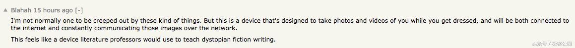 因此,在国外的 HackerNews 网站上,很多人对这一次的 Echo Look 吐槽不断,有网友就这样说道:「我一般不会对这种东西害怕。但这个是要在你穿衣打扮的时候给你拍照和摄像,而且这些都通过网络连接起来。我觉得文学教授可以拿着它教大家怎样写反乌托邦小说了......」