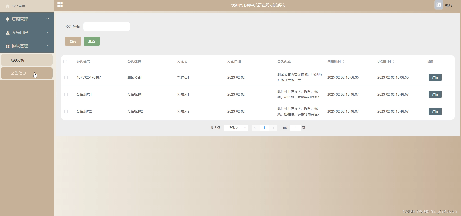 随着计算机互联网技术的迅猛发展,各行各业都已经实现采用计算机相关技术对日益放大的数据进行管理。该课题是初中英语在线考试为核心展开的,主要是为了实现学生在线考试信息化管理的需求。
