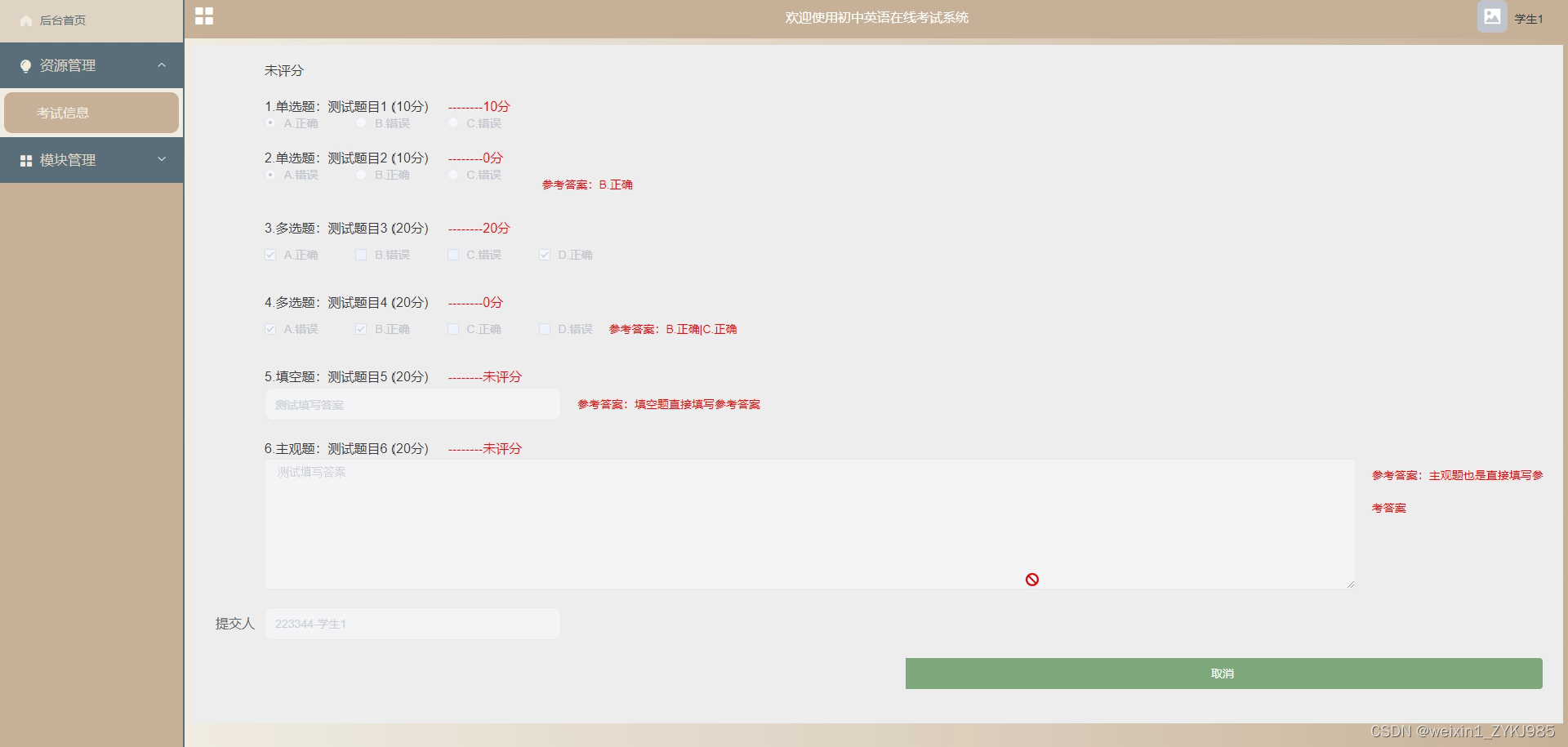 | 测试目的 | 检测考试时的各种操作的运行情况 | |
