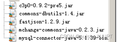 2)引入相关的jar包,包括:C3p0连接池jar , Dbutils, json处理的相关jar包,mysql的驱动jar包。