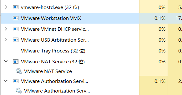 然后我又去任务管理器里希望把vmware的相关进程关闭掉,但是