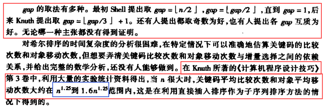 {int gap = n;while (gap > 1){gap = gap / 3 + 1;for (int i = 0; i < n-gap; i++){int end = i;int tmp = a[end + gap];while (end >= 0){if (a[end] > tmp){a[end + gap] = a[end];end -= gap;}else{break;}}a[end + gap] = tmp;}}