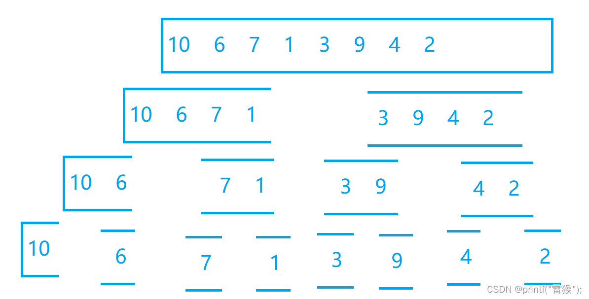 {if (begin >= end)return;int key = PartSort3(a, begin, end);QuickSort(a, begin, key - 1);//对key左边排序QuickSort(a, key + 1, end);//对key右边排序