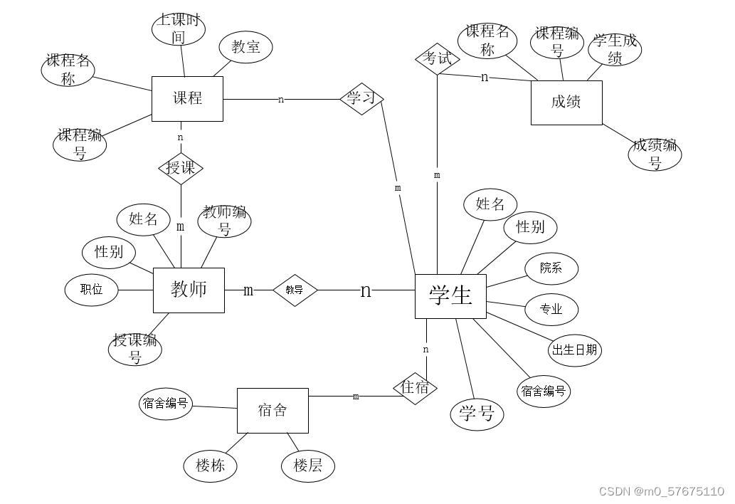 宿舍表包括宿舍编号(room_id)、楼栋(building)、楼层(floor)