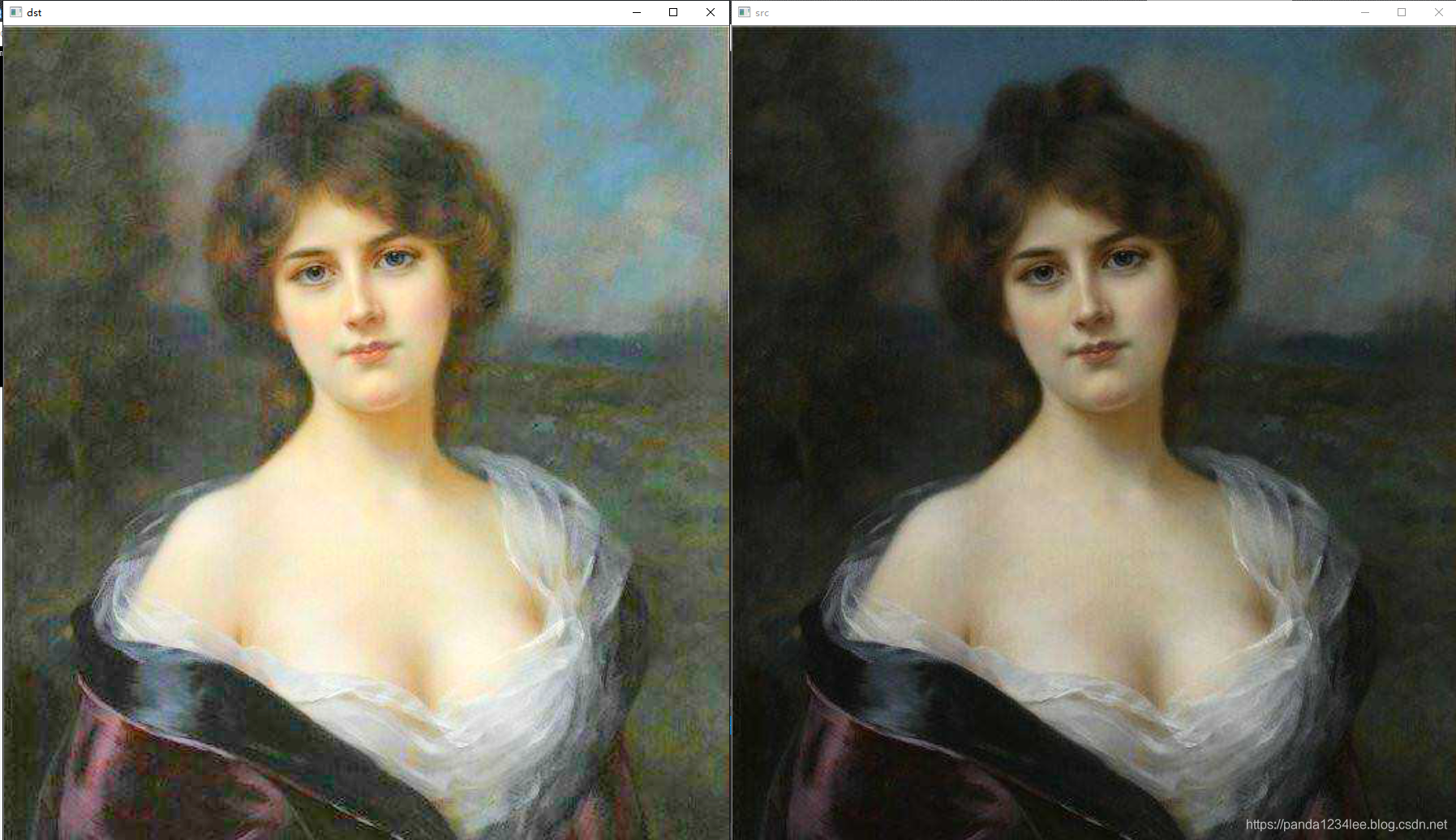 窗口下的均值,ε 是正则化参数。【因为在作者的算法中传进导向滤波器的导向图像与输入图像是一致的,所以公式看起来和何凯明的原公式有点不太一样,其实是一致的】