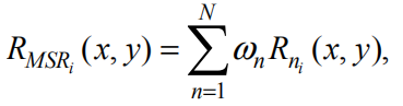 为图像在第 i 个光谱波段的分布,*为卷积运算,F(x,y) 为高斯环绕函数