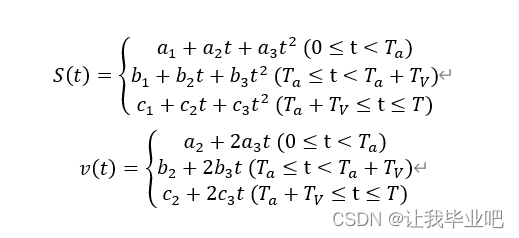 因为是定加速度,所以位置可以表示为关于时间的2次多项式,速度可以表示为关于时间的一次多项式: