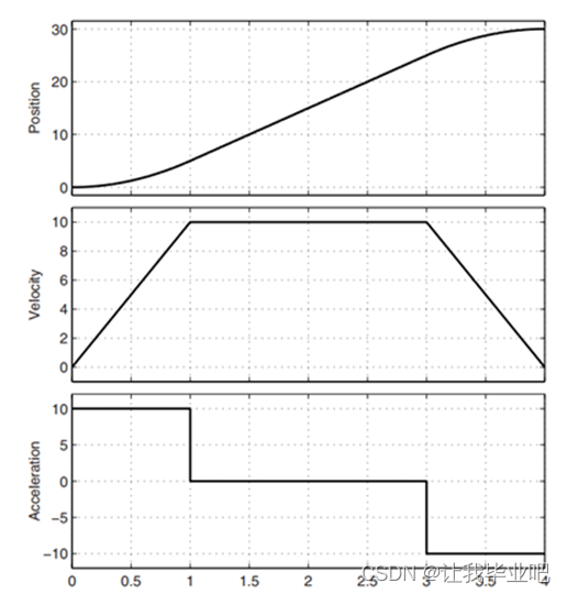 T形规划特点:速度连续,加速度不连续,整个过程经历匀加速-匀速-匀减速三个阶段。