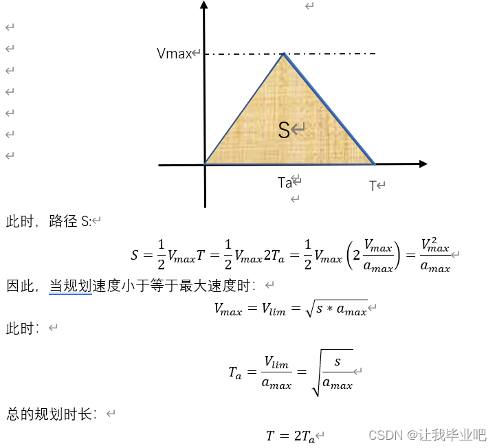 输入:路程S(或始末位姿),速度极限Vamx、加速度极限amax。
