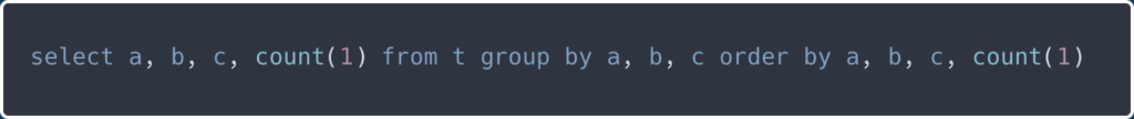 这里可以举一个例子。比如对于一个分组求和并排序输出的SQL,它的代码可能是下图这样的。