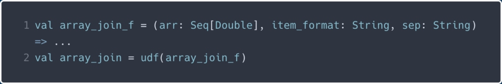 在组织测试时,我们可以用单元测试的方式,不依赖计算框架。比如,以下Scala编写的自定义函数: