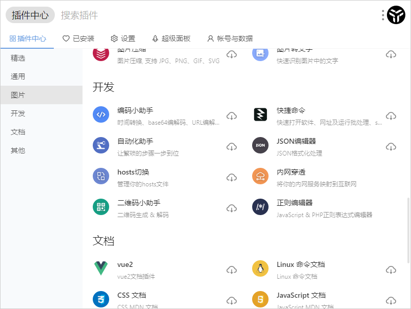启动已安装的程序仅仅是最基础的功能,uTools 最大的特点就是拥有强大的插件系统。