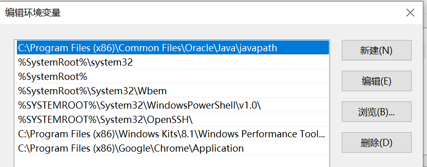 点击新建将Chrome所在文件夹路径加入其中(如下图最后一行所示)