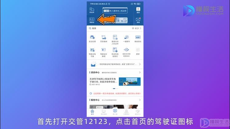 1、首先打开交管12123,点击首页的驾驶证图标。