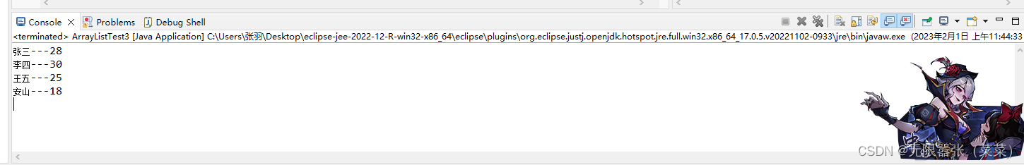 public class ArrayListTest3 {public static void main(String[] args) {//创建集合对象ArrayList array = new ArrayList();//创建学生对象Student s1 = new Student("张三",28);Student s2 = new Student("李四",30);Student s3 = new Student("王五",25);Student s4 = new Student("安山",18);//把学生对象作为元素添加到集合中array.add(s1);array.add(s2);array.add(s3);array.add(s4);//遍历集合for(int x=0; x