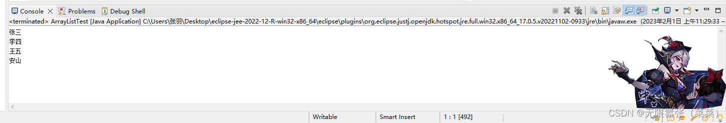 public class ArrayListTest {public static void main(String[] args) {//创建字符串对象ArrayList array = new ArrayList();//添加字符串array.add("张三");array.add("李四");array.add("王五");array.add("安山");//遍历集合for(int x=0; x