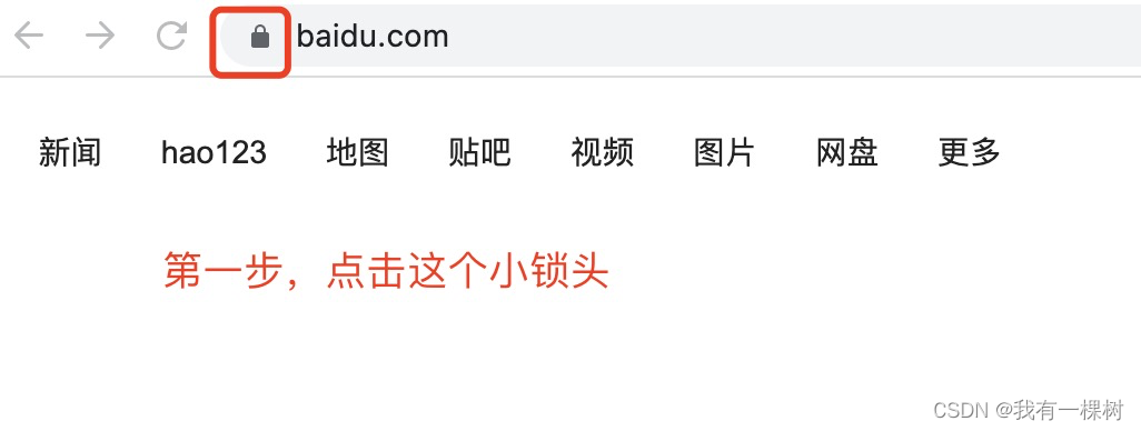 1. 直接用浏览器打开要查询的网址,比如https://baidu.com,然后点击