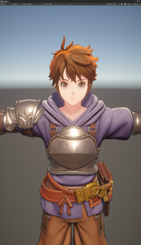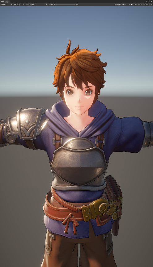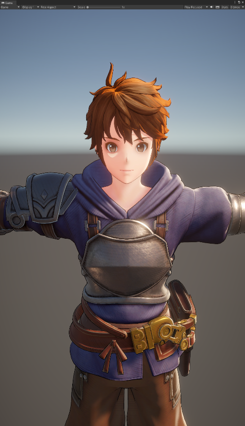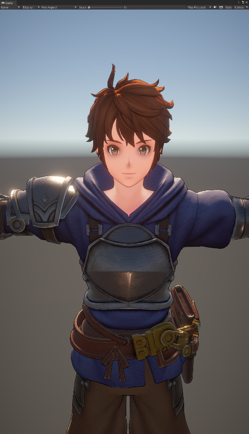 身体部分包含皮肤和衣服的渲染,目前是使用统一的Shader来进行处理,用Mask图来区分,皮肤用了简单的漫反射颜色,并留出用来调整阴影颜色的变量来与后面要说的面部阴影的颜色对齐。衣服部分的光照计算也相当简单,直接光照计算模型是使用微改后的Cook-Torrance的BRDF,漫反射分量就是简单的Lambert,高光部分使用的是基于物理的法线分布函数。间接光的漫反射部分是用的球谐函数,间接光高光部分采的场景内的ReflectionProbe Cube图。然后配合着上面说过的Rim光和描边,就基本可以达到预期。