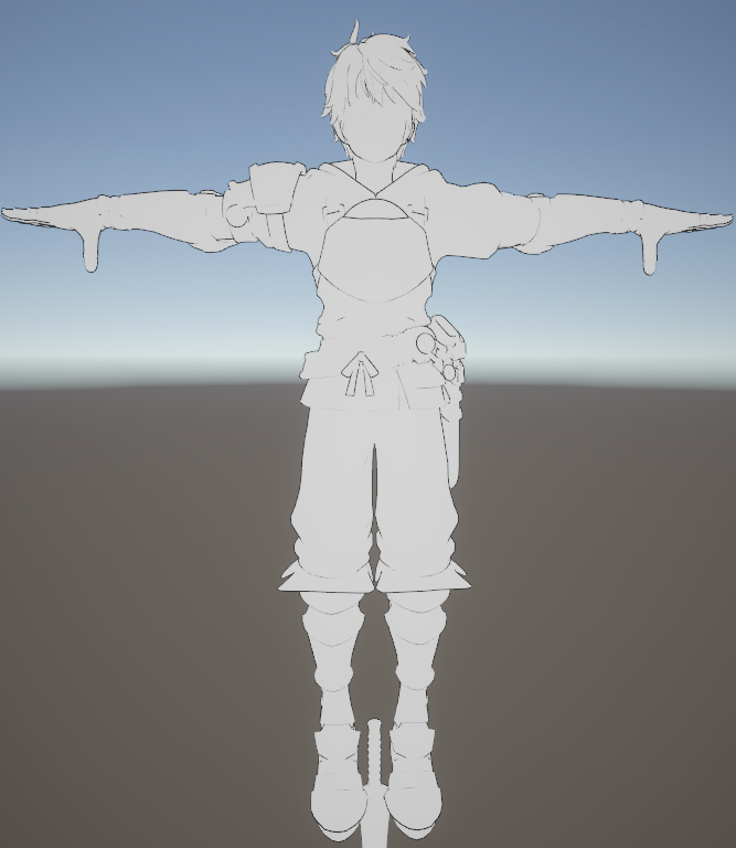 以上方法各有各的应用场景,针对此角色只测试了基于法线外扩的方法和后处理边缘检测的方法,后处理方法因为不能快捷方便的区分出需要描边的物体,并且性能消耗略高,就被淘汰使用了。