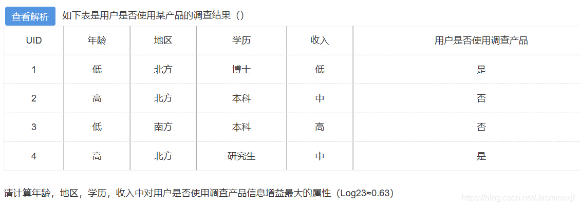 7. 深度学习是当前很热门的机器学习算法。在深度学习中,涉及到大量矩阵相乘,现在需要计算三个稠密矩阵A,B,C的乘积ABC,假设三个矩阵的尺寸分别为m*n,n*p,p*q,且m A.A(BC) B.(AB)C 解释: a*b,b*c两矩阵相乘效率为a*c*b ABC=(AB)C=A(BC). (AB)C = m*n*p + m*p*q, A(BC)=n*p*q + m*n*q. m*n*p 8. 以下哪个模型是生成式模型:贝叶斯模型 而 逻辑回归、SVM、条件随机场是判别式模型。 9. 考虑如下数据集,其中Customer ID(顾客id),Transaction ID(事务id),Items Bought(购买项)。如果将每个事务id看成一个购物篮,计算项集{e}, {b, d}, {b, d, e}的支持度: 答案:s({e}) =0.8s({b, d})= 0.2s({b, d, e})= 0.2 10. 以下哪些方法不可以直接来对文本分类?K-Means 决策树、支持向量机、KNN均可用于进行文本分类; 尤其是对于KNN进行文本分类时,已有的数据点是有label数据,对于新的数据需要计算其最近邻的K个样本的类别最大支持度(vote原则)得到相应的类别。 Kmeans是聚类方法,典型的无监督学习方法。分类是监督学习方法,BCD都是常见的分类方法。 KNN分类算法(先验数据中就有类别之分,未知的数据会被归类为之前类别中的某一类!)KNN算法解释及源码实现 11. 下面有关序列模式挖掘算法的描述,错误的是?C A.AprioriAll算法和GSP算法都属于Apriori类算法,都要产生大量的候选序列 B.FreeSpan算法和PrefixSpan算法不生成大量的候选序列以及不需要反复扫描原数据库 C.在时空的执行效率上,FreeSpan比PrefixSpan更优 (PrefixSpan比FreeSpan更优) D.和AprioriAll相比,GSP的执行效率比较高 参考解释: 1. Apriori算法 :关联分析原始算法,用于从候选项集中发现频繁项集。两个步骤:进行自连接、进行剪枝。缺点:无时序先后性。 AprioriAll算法:AprioriAll算法与Apriori算法的执行过程是一样的,不同点在于候选集的产生,需要区分最后两个元素的前后。 AprioriSome算法:可以看做是AprioriAll算法的改进 AprioriAll算法和AprioriSome算法的比较: (1)AprioriAll用 去计算出所有的候选Ck,而AprioriSome会直接用 去计算所有的候选 ,因为 包含 ,所以AprioriSome会产生比较多的候选。 (2)虽然AprioriSome跳跃式计算候选,但因为它所产生的候选比较多,可能在回溯阶段前就占满内存。 (3)如果内存占满了,AprioriSome就会被迫去计算最后一组的候选。 (4)对于较低的支持度,有较长的大序列,AprioriSome算法要好些。 2. GPS算法:类Apriori算法。用于从候选项集中发现具有时序先后性的频繁项集。两个步骤:进行自连接、进行剪枝。缺点:每次计算支持度,都需要扫描全部数据集;对序列模式很长的情况,由于其对应的短的序列模式规模太大,算法很难处理。 3. SPADE算法:改进的GPS算法,规避多次对数据集D进行全表扫描的问题。与GSP算法大体相同,多了一个ID_LIST记录,使得每一次的ID_LIST根据上一次的ID_LIST得到(从而得到支持度)。而ID_LIST的规模是随着剪枝的不断进行而缩小的。所以也就解决了GSP算法多次扫描数据集D问题。 4. FreeSpan算法:即频繁模式投影的序列模式挖掘。核心思想是分治算法。基本思想为:利用频繁项递归地将序列数据库投影到更小的投影数据库集中,在每个投影数据库中生成子序列片断。这一过程对数据和待检验的频繁模式集进行了分割,并且将每一次检验限制在与其相符合的更小的投影数据库中。 优点:减少产生候选序列所需的开销。缺点:可能会产生许多投影数据库,开销很大,会产生很多的 5. PrefixSpan 算法:从FreeSpan中推导演化而来的。收缩速度比FreeSpan还要更快些。 自己的理解:序列模式挖掘 12.下列不是SVM核函数的是:logistic核函数 解释: SVM核函数包括线性核函数、多项式核函数、径向基核函数、高斯核函数、幂指数核函数、拉普拉斯核函数、ANOVA核函数、二次有理核函数、多元二次核函数、逆多元二次核函数以及Sigmoid核函数 13. 以下关于PMF(概率质量函数),PDF(概率密度函数),CDF(累积分布函数)描述错误的是(A) A. PDF描述的是连续型随机变量在特定取值区间的概率(PDF非概率) B.CDF是PDF在特定区间上的积分 C.PMF描述的是离散型随机变量在特定取值点的概率 D.有一个分布的CDF函数H(x),则H(a)等于P(X<=a) 解释: 概率质量函数 (probability mass function,PMF)是离散随机变量在各特定取值上的概率。 概率密度函数(p robability density function,PDF )是对 连续随机变量 定义的,本身不是概率,只有对连续随机变量的取值进行积分后才是概率。 累积分布函数(cumulative distribution function,CDF) 能完整描述一个实数随机变量X的概率分布,是概率密度函数的积分。对於所有实数x ,与pdf相对。 14. 一般,k-NN最近邻方法在( 样本少但典型性好)的情况下效果较好。 解释: 样本数少:kNN每次预测要计算距离,所以是带着整个样本集跑的(也有些剪辑近邻之类的会剪掉一些),所以样本数越少越好。 典型性:不仅是kNN,每个分类算法都希望样本典型性好,这样才好做分类。 15. 输入图片大小为200×200,依次经过一层卷积(kernel size 5×5,padding 1,stride 2),pooling(kernel size 3×3,padding 0,stride 1),又一层卷积(kernel size 3×3,padding 1,stride 1)之后,输出特征图大小为:97*97 解释: 计算尺寸不被整除只在GoogLeNet中遇到过。卷积向下取整,池化向上取整。 本题 (200-5+2*1)/2+1 为99.5,取99 (99-3)/1+1 为97 (97-3+2*1)/1+1 为97 研究过网络的话看到stride为1的时候,当kernel为 3 padding为1或者kernel为5 padding为2 一看就是卷积前后尺寸不变。 计算GoogLeNet全过程的尺寸也一样。 16. 在spss的基础分析模块中,作