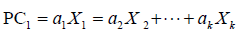 PCA的目标是用一组较少的不相关变量代替大量相关变量,同时尽可能保留初始变量的信息,这些推导所得的变量称为主成分,它们是观测变量的线性组合。如第一主成分为: