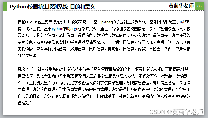 python毕业设计项目源码选题(6)校园新生自助报到系统毕业设计毕设作品开题报告开题答辩PPT