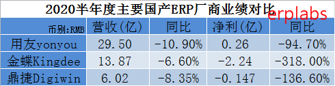 2020上半年中国主要国产ERP软件厂商业绩如何?直接看下图。