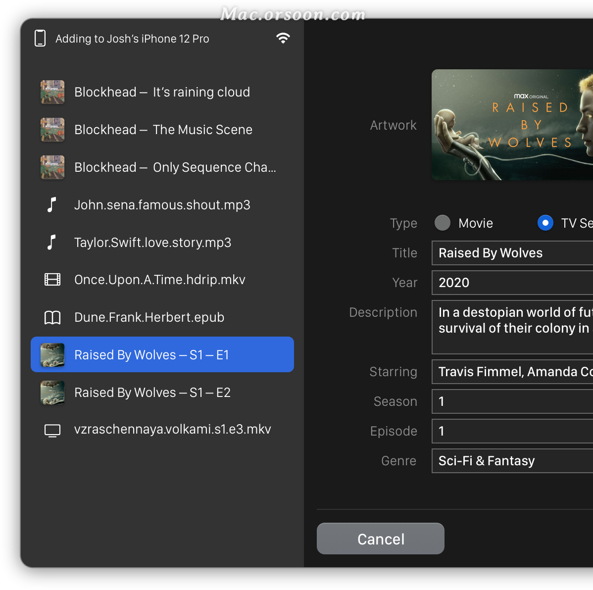 | 编辑元数据和封面 早在2016年,我们就推出了ACR –自动内容识别功能,该功能可自动扫描并填充丢失的元数据。 在收到来自专业用户的大量请求之后,WALTR PRO提供了手动编辑封面和元数据的功能。只需按住Alt(⌥)键并拖放文件,即可完全控制媒体的外观。 | ![]() |