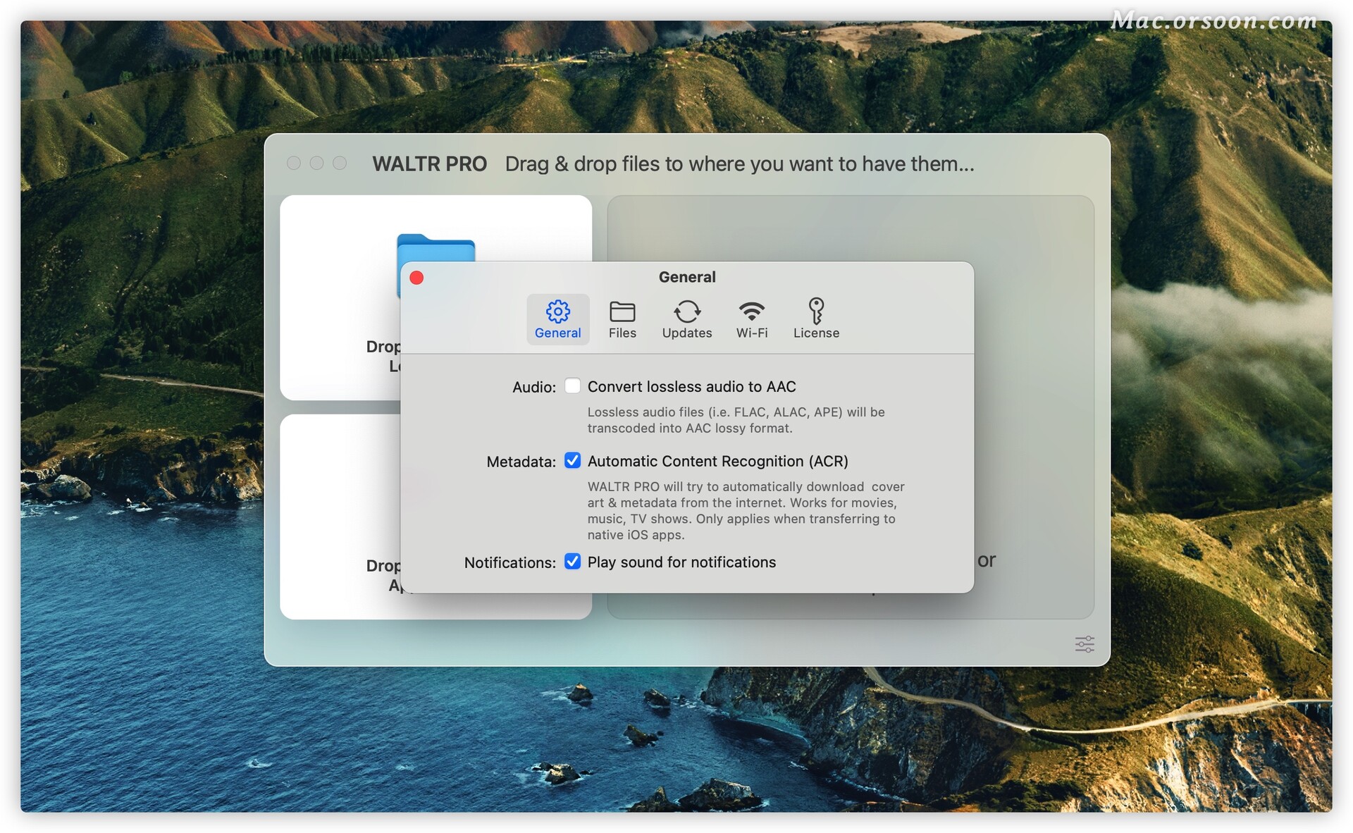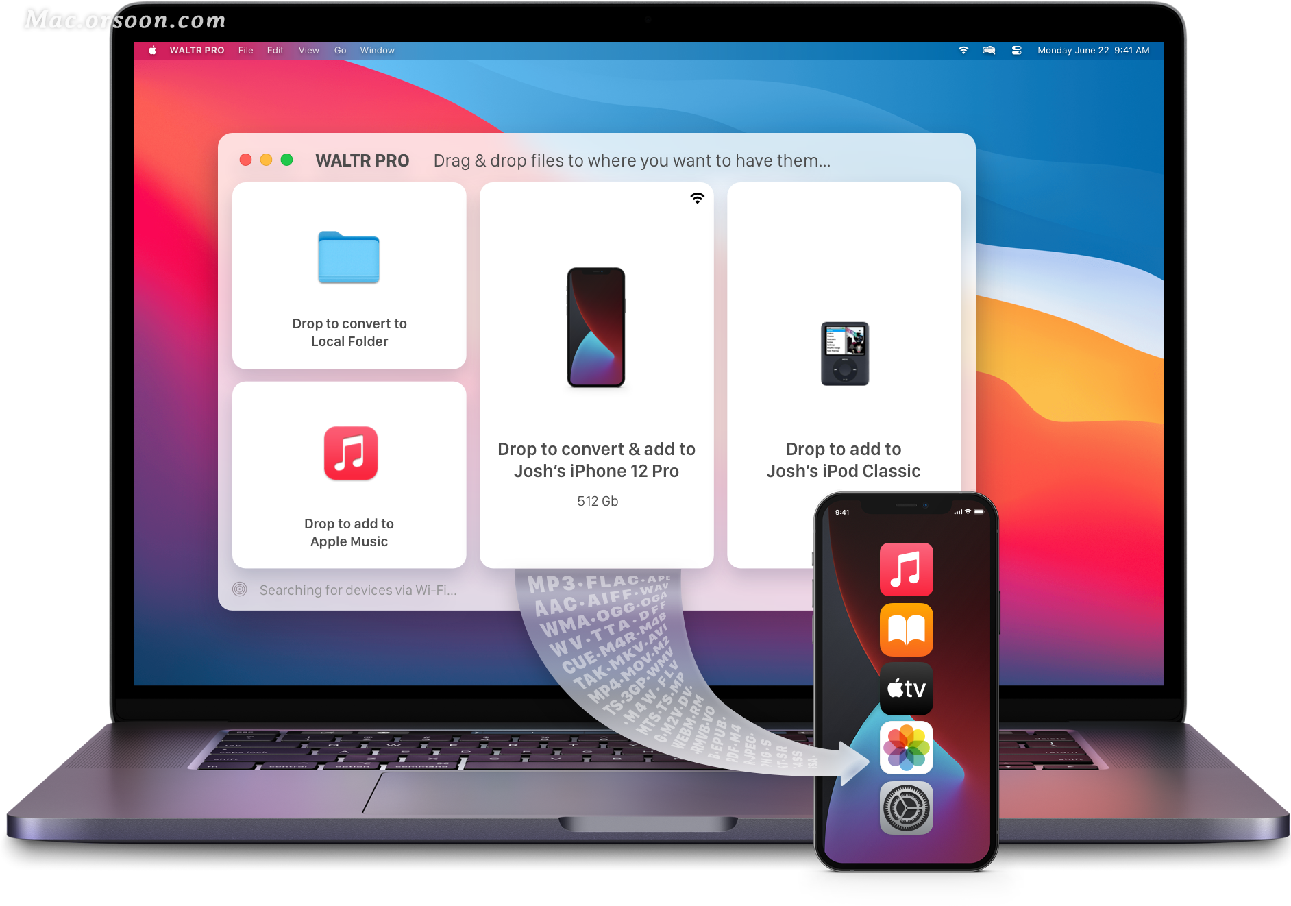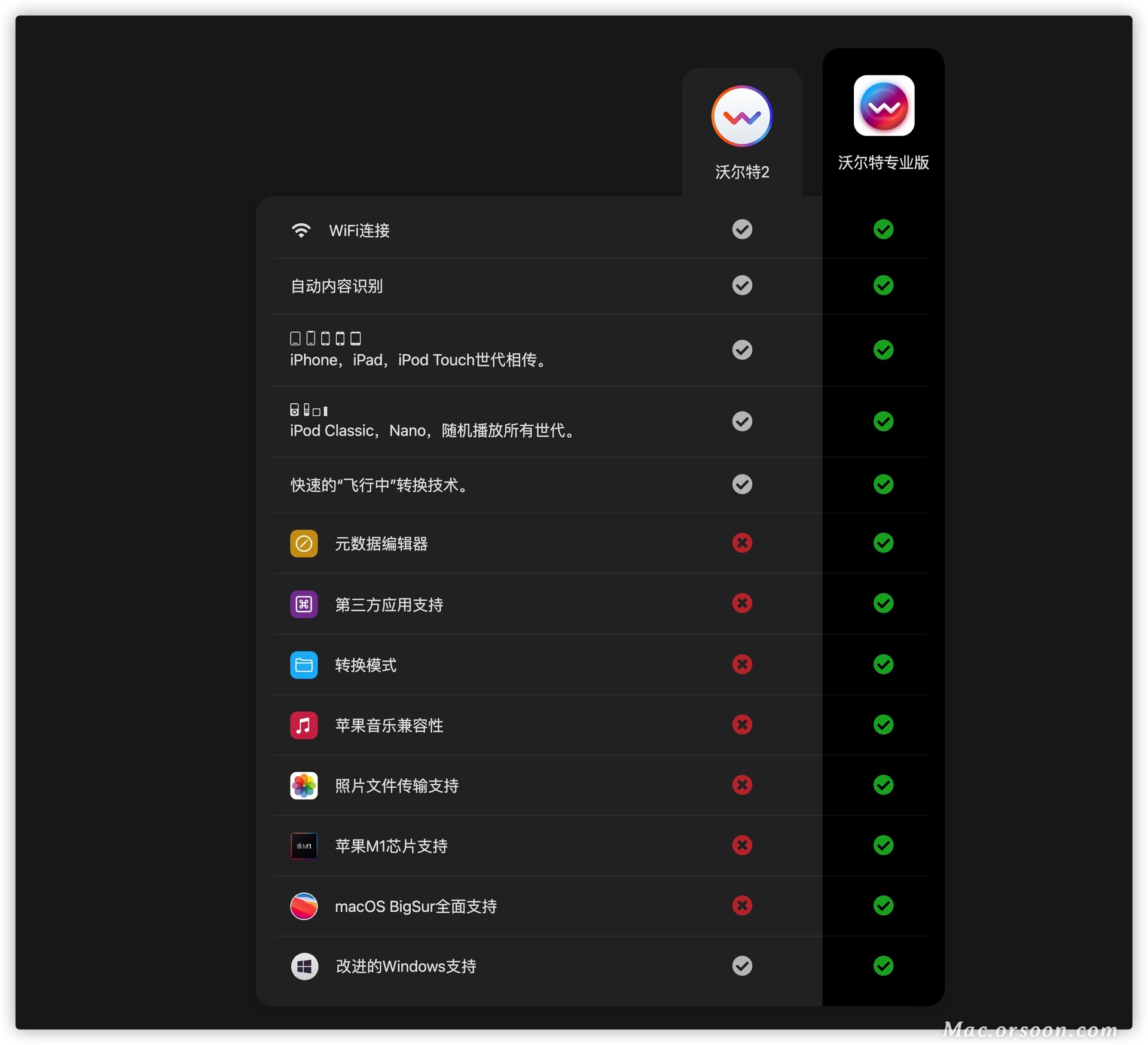 WALTR PRO 是一款ios文件同步传输神器,在WALTR 2的基础上,WALTR PRO在保留全设备支持、多格式兼容以及局域网传输等优势的同时,新加入自定义接收应用、媒体元数据,以及 macOS 格式转换、Apple Music 支持四大新功能,而且WALTR PRO也有同样简洁明了的UI设计,以及让文件传输有多一个选择的iOS端配套App File by WALTR,同时做了M1芯片与Big Sur系统的优化,这些新的功能与升级,就是它的「Pro」之处。
